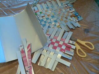 - Los tetra-bricks los abrimos y los cortamos en tiras de 1 cm de ancho, que después tejemos entrelazadas.